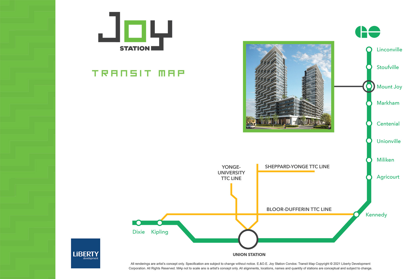 Joy Station Condos Situated at Markham Road and 16th Avenue. Markham’s popular attractions, Markville Mall, Main Street Unionville and Main Street Markham, are a short drive away both offering unique shopping and dining experiences.